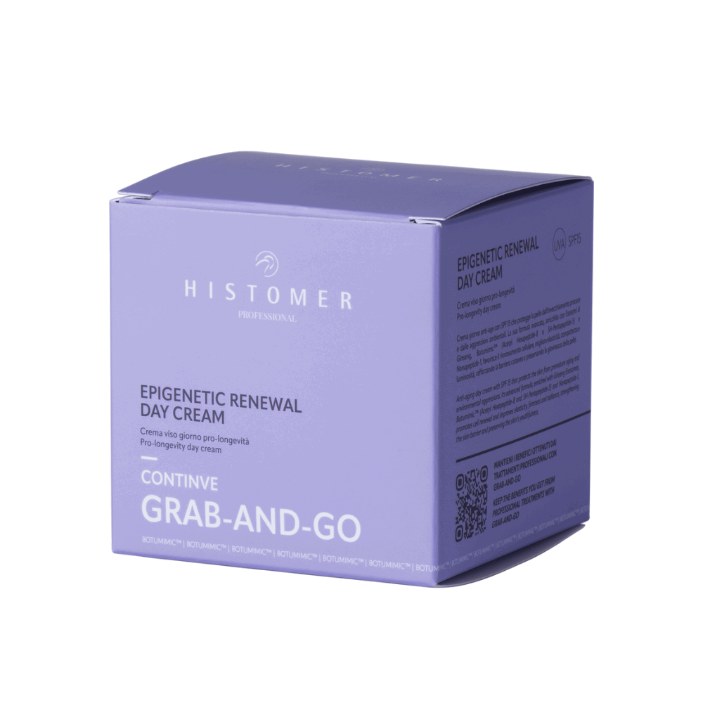 ContinVe Epigenetic Renewal Day Cream is an anti-aging day cream with SPF 15 that protects against premature aging and environmental aggressors. Its advanced formula, enriched with Ginseng Exosomes, BOTUMIMIC™ (Acetyl Hexapeptide-8 and Sh-Pentapeptide-5), and Nonapeptide-1, supports cellular renewal, improves elasticity, firmness, and radiance, while strengthening the skin barrier and preserving youthfulness.