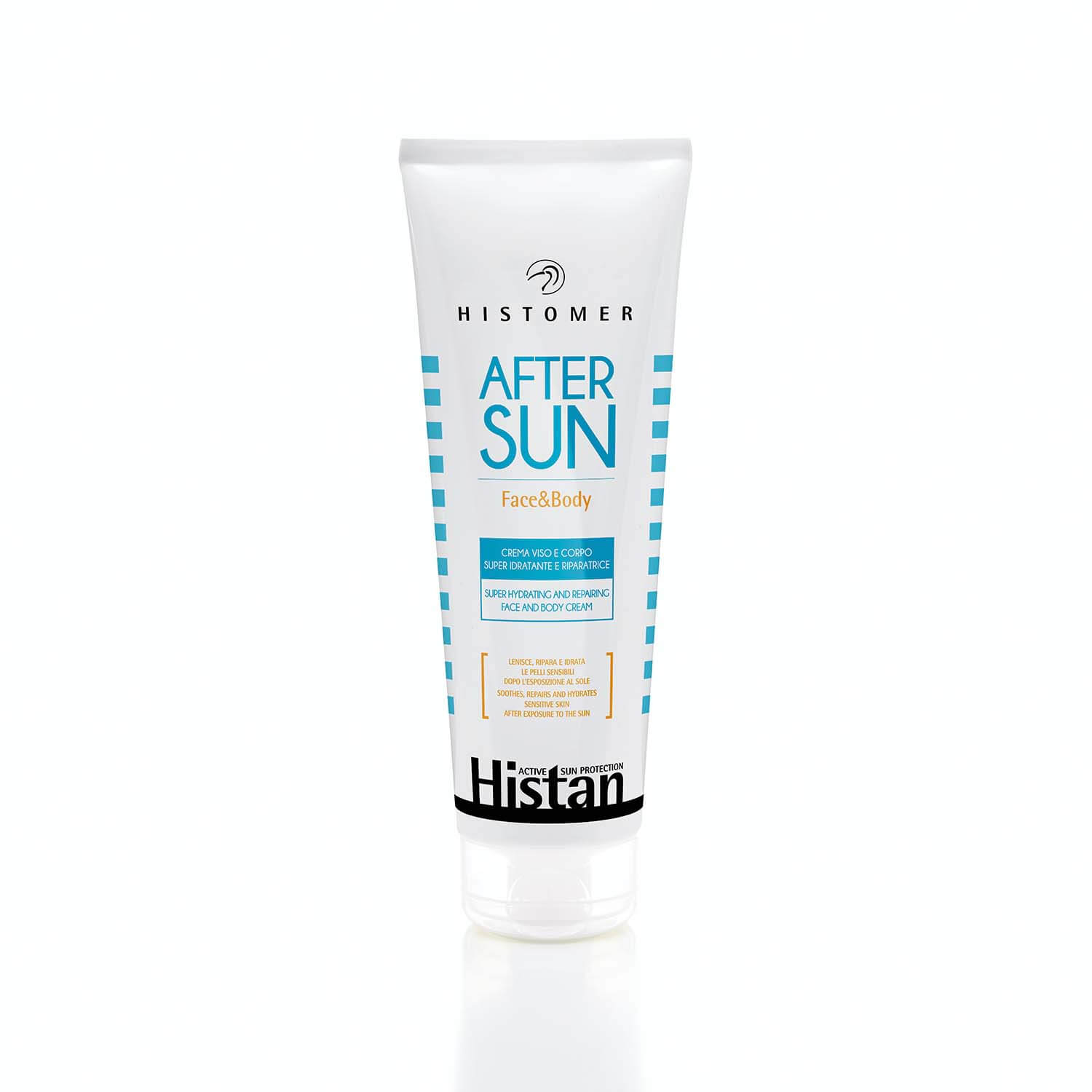 Histomer, Histan, sensitive skin after sun cream, moisturizing after-sun cream, face and body lotion, sunburn relief cream, histomer, after-sun skincare, soothing after-sun lotion, 250ml, sensitive skin care, face and body cream in europe, cream for face and body, monderme beauty.