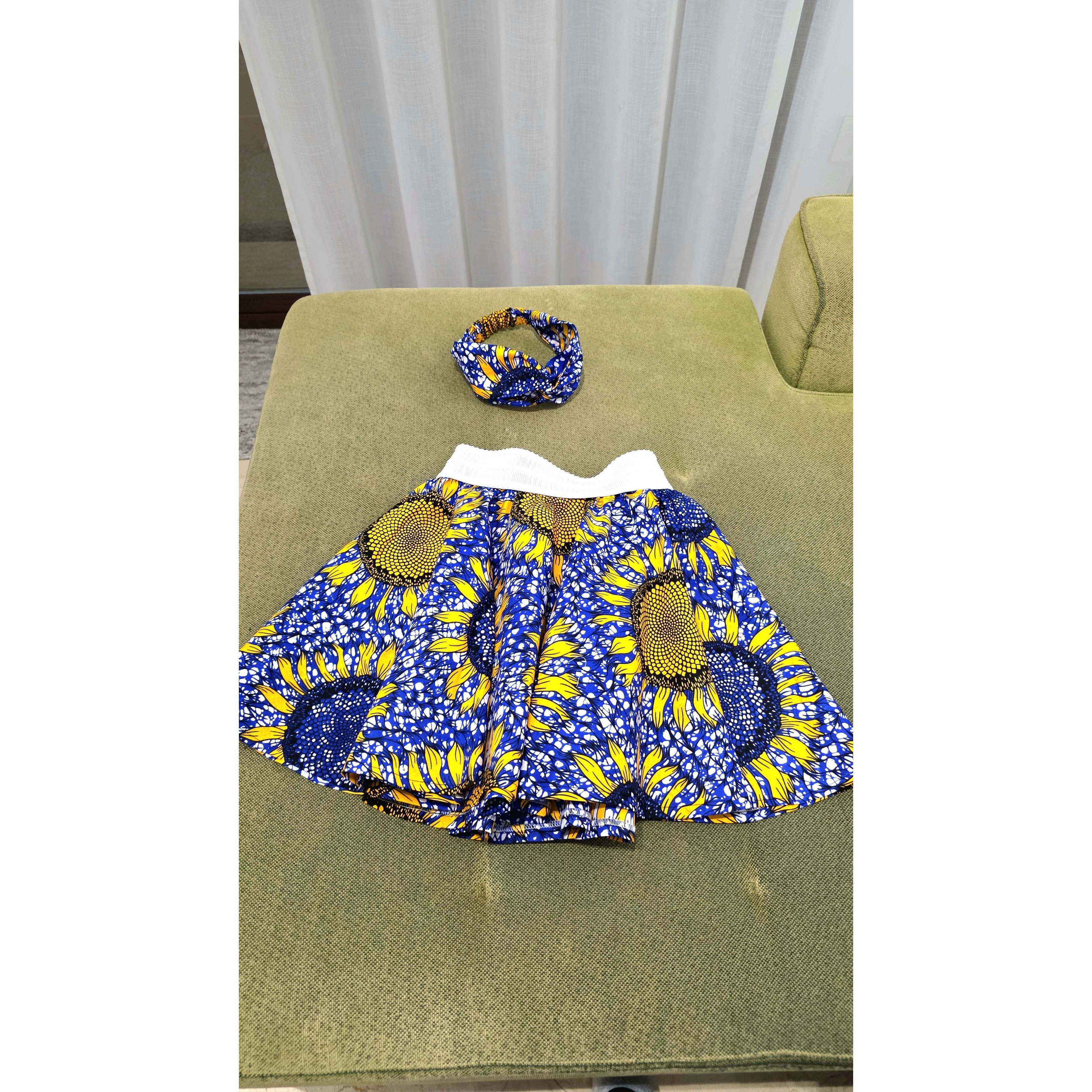 Radiate joy and confidence in the Solara Bloom Skirt, a vibrant circle skirt handcrafted from 100% premium cotton. Featuring a bold sunflower-inspired print in deep blue and golden tones, this piece celebrates movement, color, and effortless femininity. The elasticated waistband ensures a comfortable, flattering fit that moves with you, perfect for sunny days, casual outings, or statement moments.